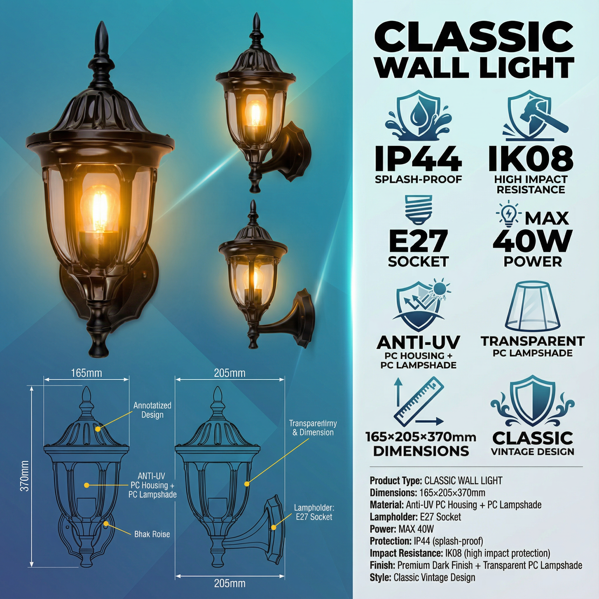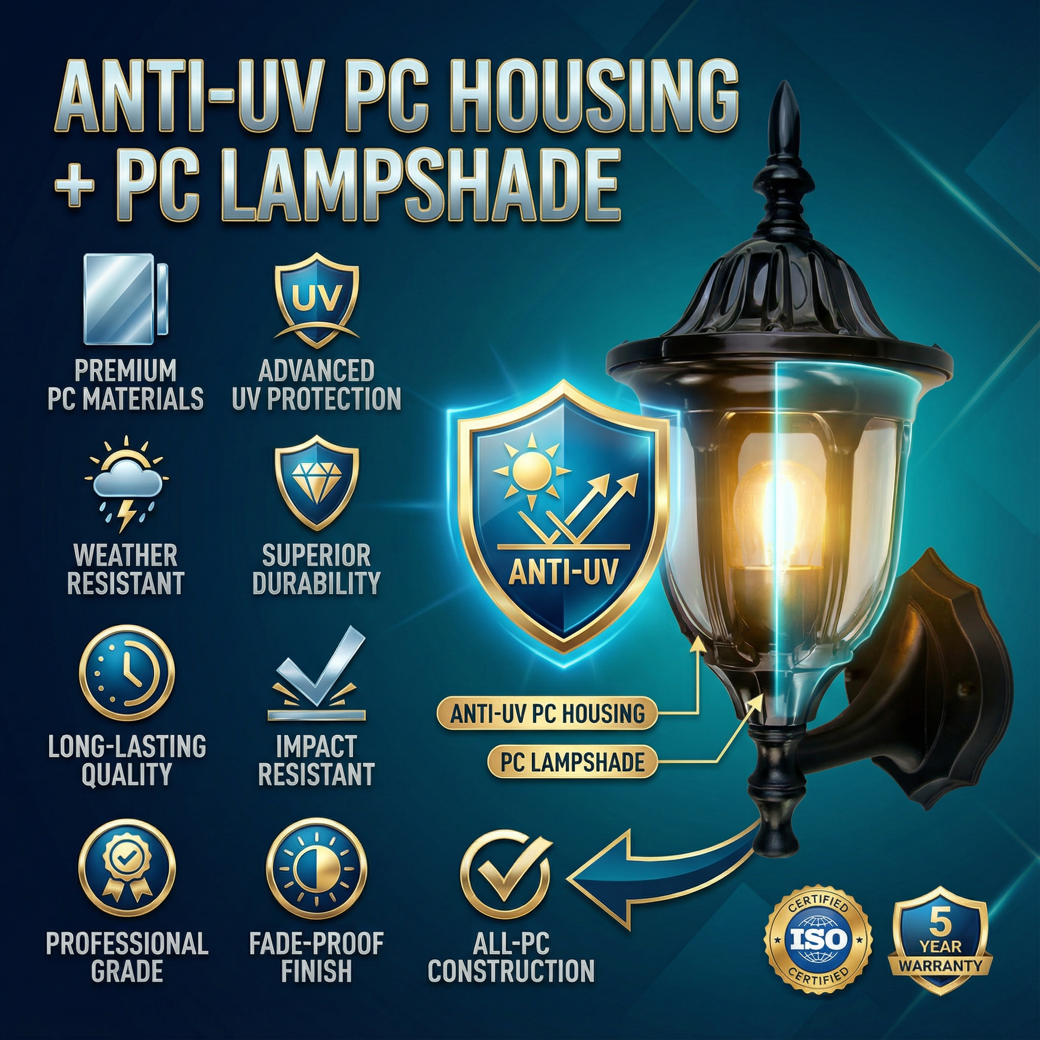 Le boîtier et l'abat-jour sont tous deux en polycarbonate résistant aux UV.