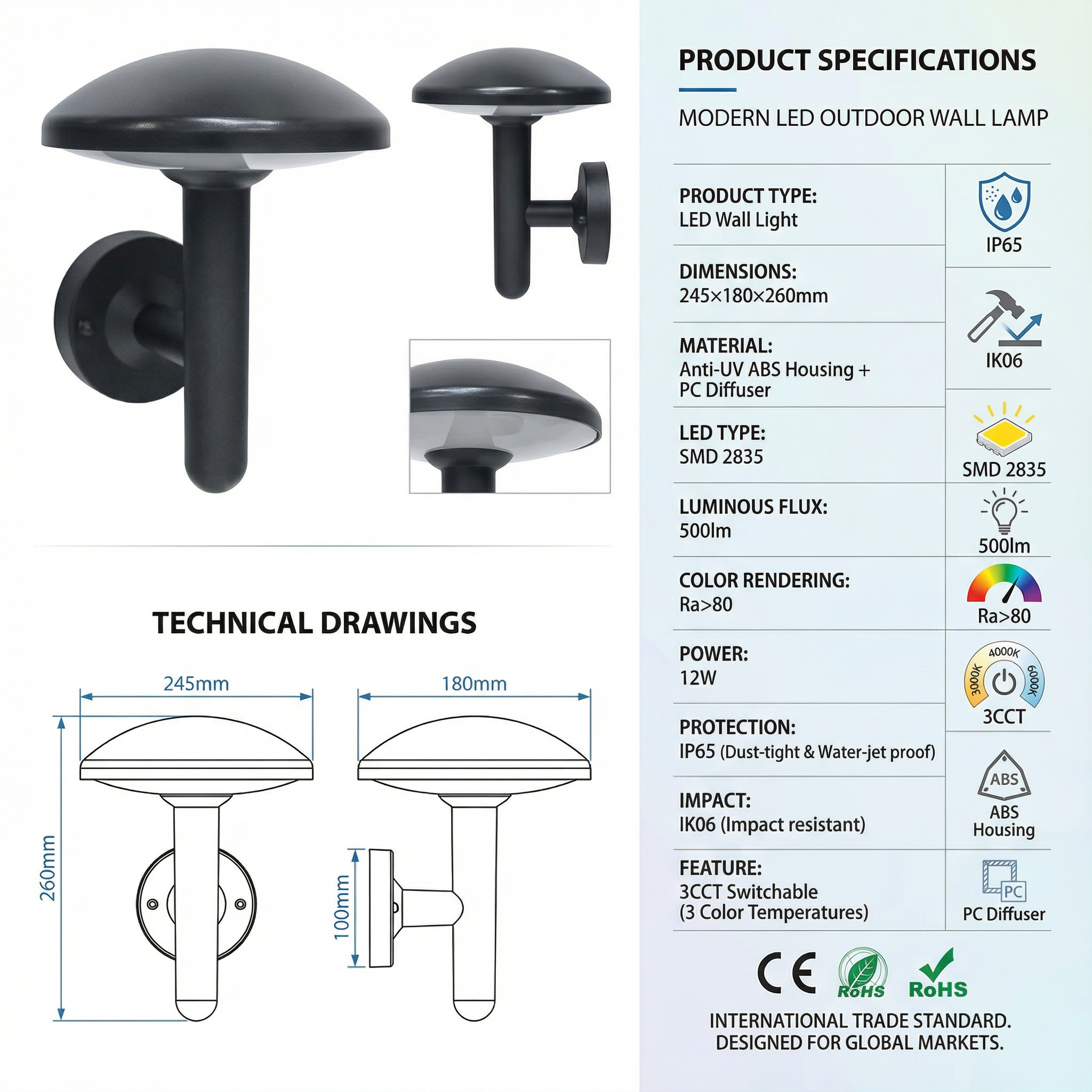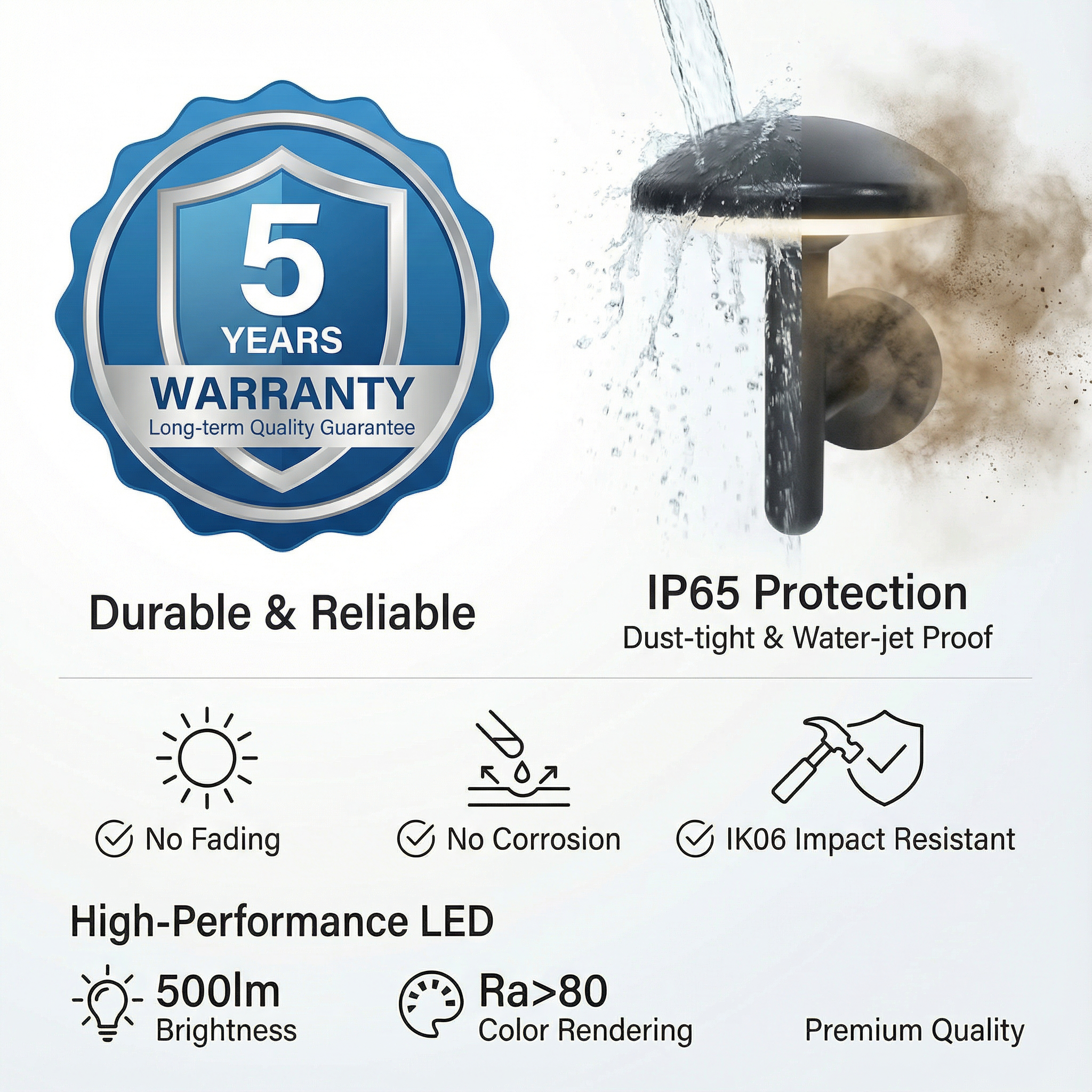 IP65 entièrement étanche (résistant aux intempéries)