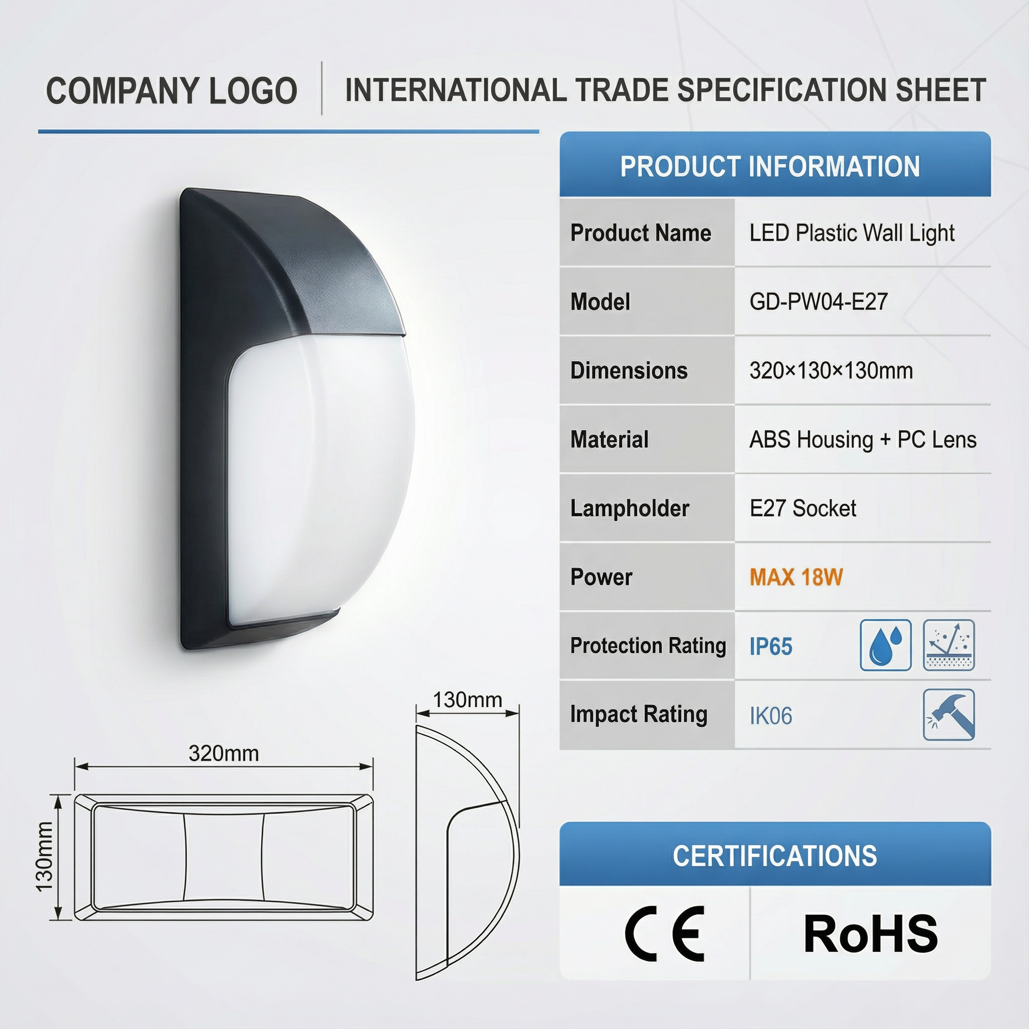 Standard E27 base, max 18W