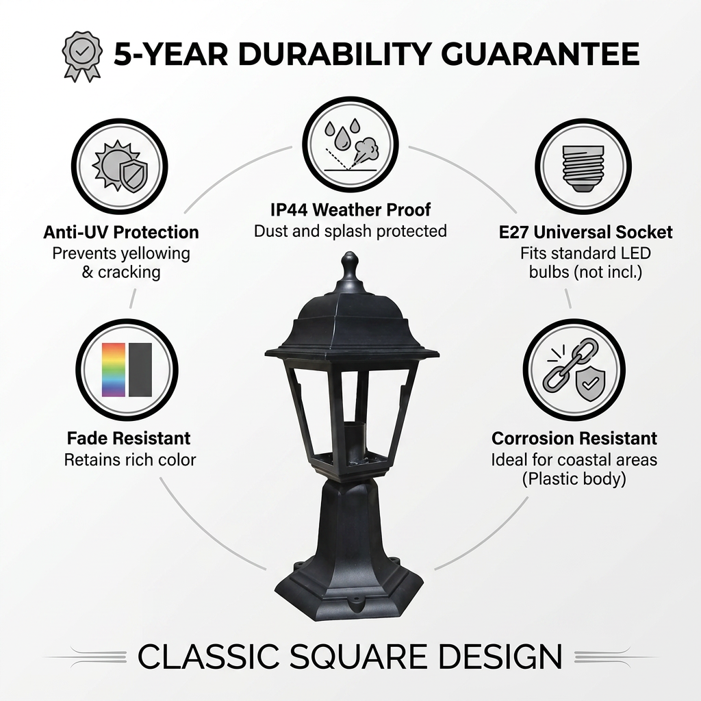 户外柱灯 庭院灯 E27 PP 材质 405mm IP44 防水 花园灯 别墅灯 抗紫外线 IK06 防撞 步道灯 玻璃透镜40W 景观照明 环保材料