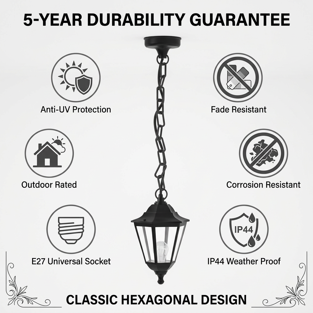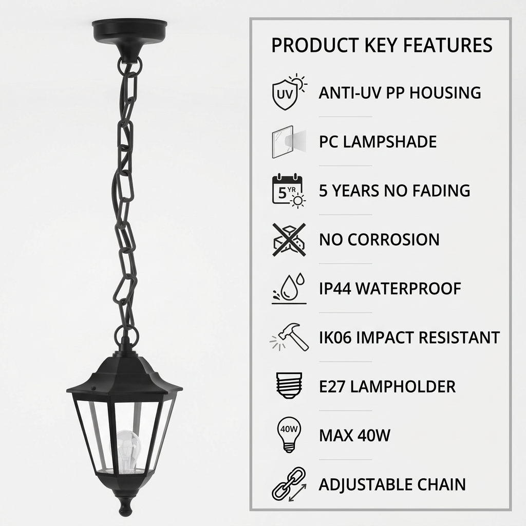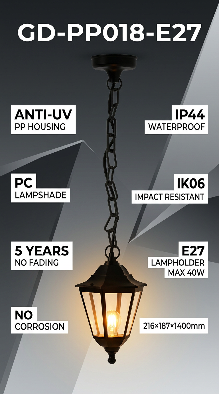 IP44 (resistente a respingos) + IK06 (impacto de 1J). Design com tampa impermeável na parte superior. Ideal para varandas, gazebos e corredores.