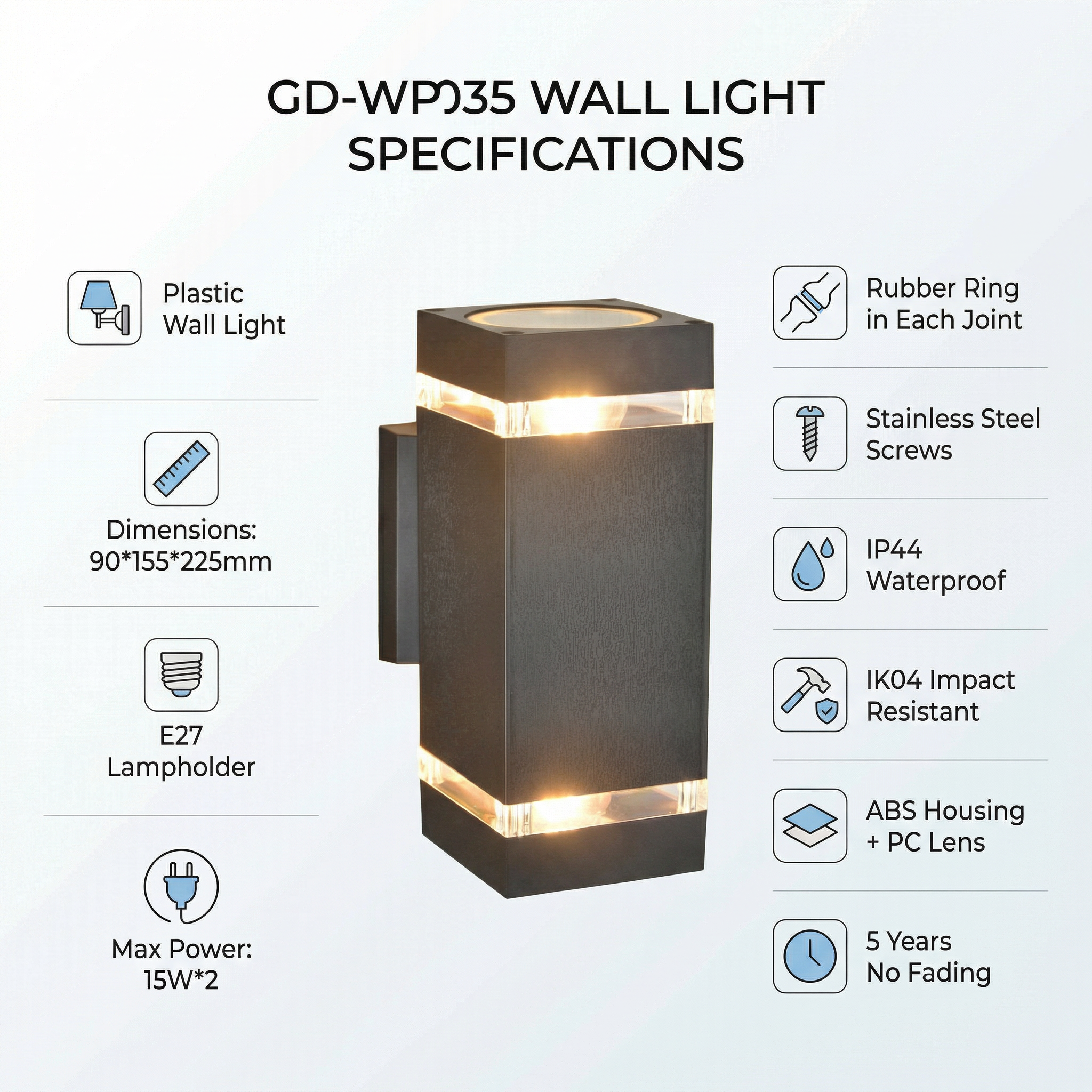 Dimensões compactas: 90×155×225 mm, perfil com 225 mm de altura.