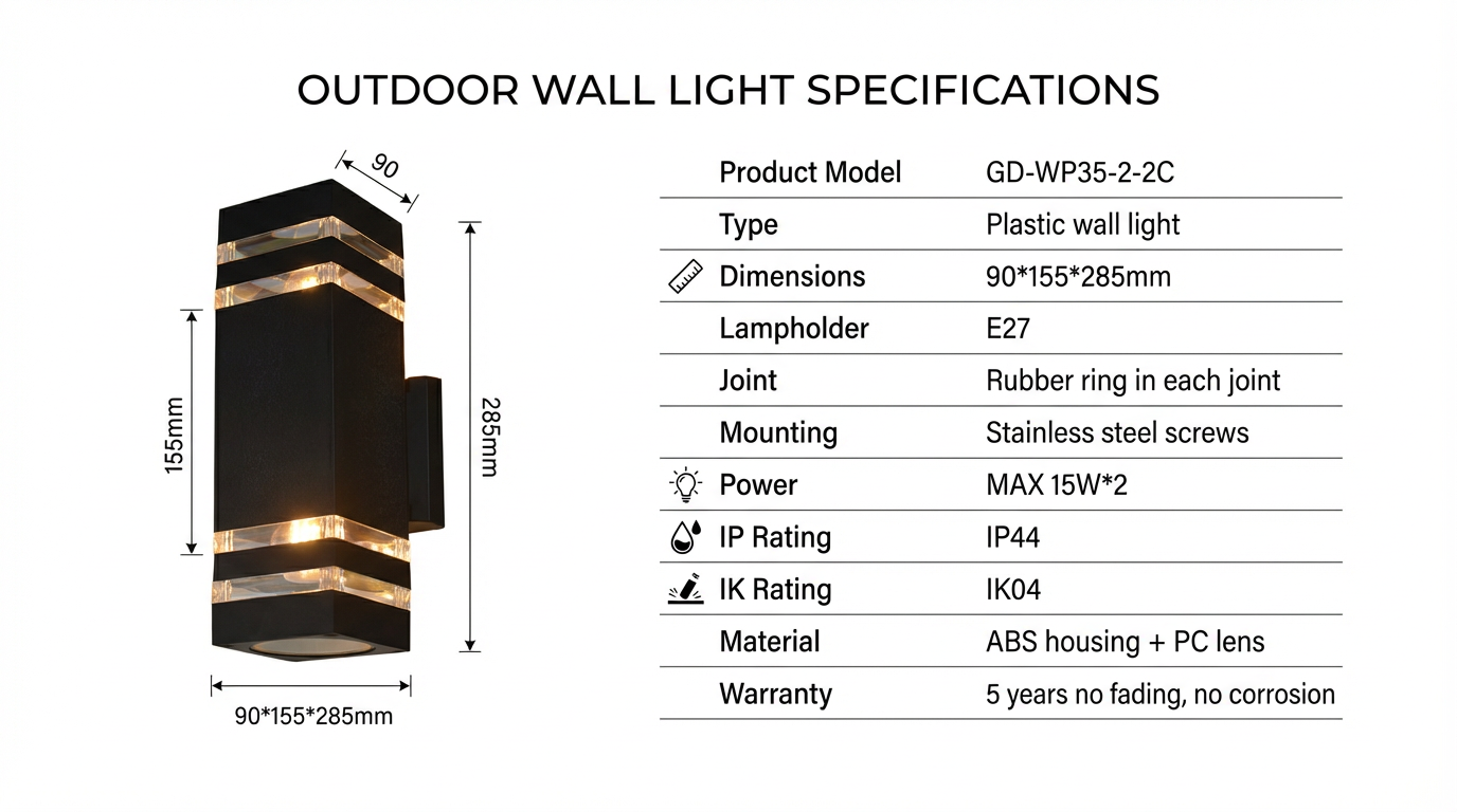 O pacote inclui: 1 x Luminária de parede, 1 x Kit de acessórios (parafusos e buchas)