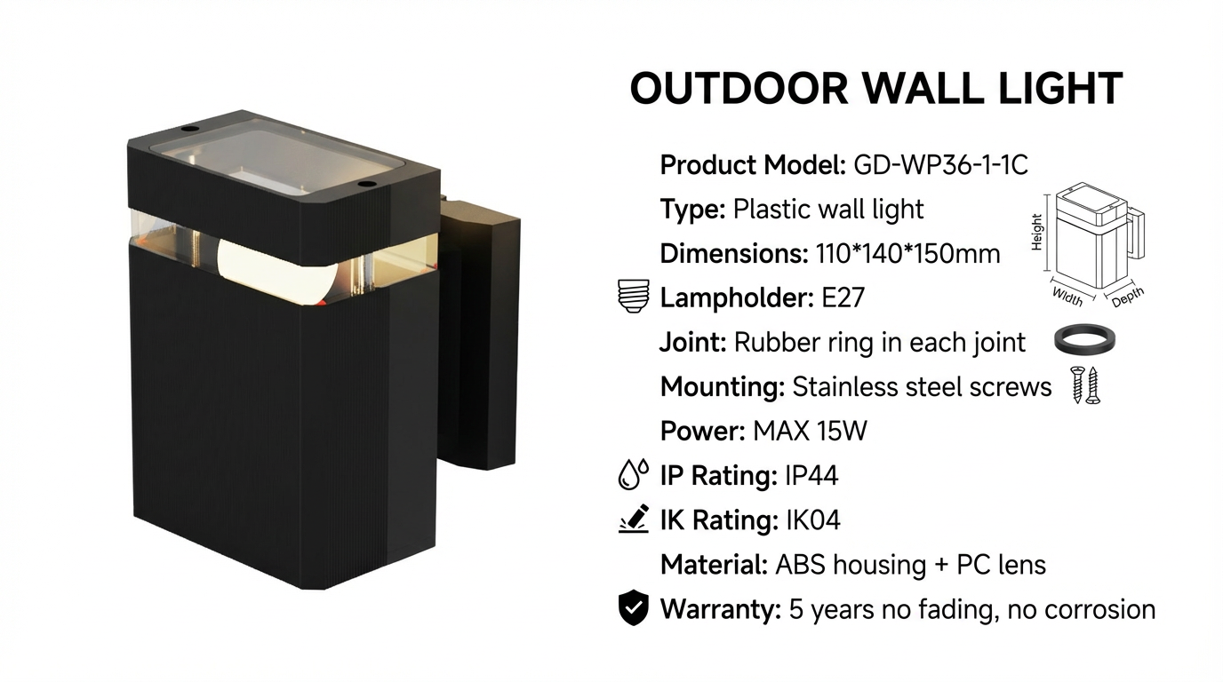 O pacote inclui: 1 x Luminária de parede, 1 x Kit de acessórios (parafusos e buchas)
