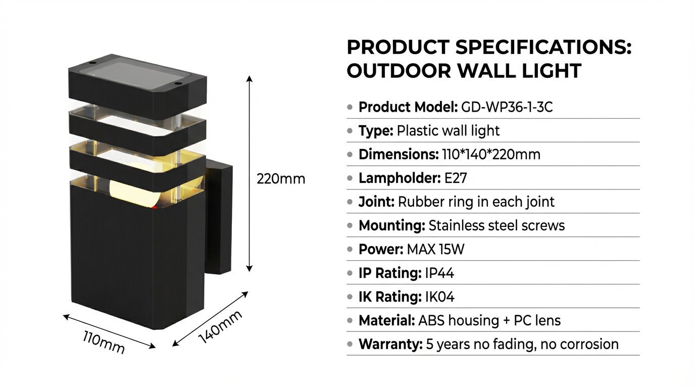 O pacote inclui: 1 x Luminária de parede, 1 x Kit de acessórios (parafusos e buchas)