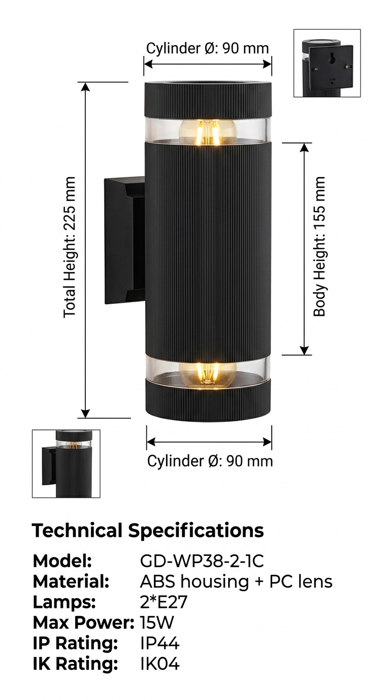 O pacote inclui: 1 x Luminária de parede, 1 x Kit de acessórios (parafusos e buchas)