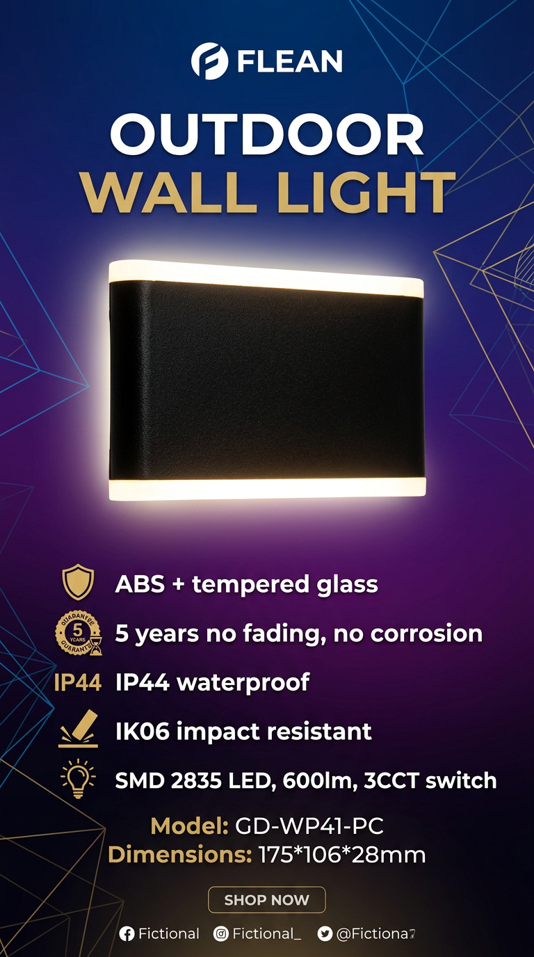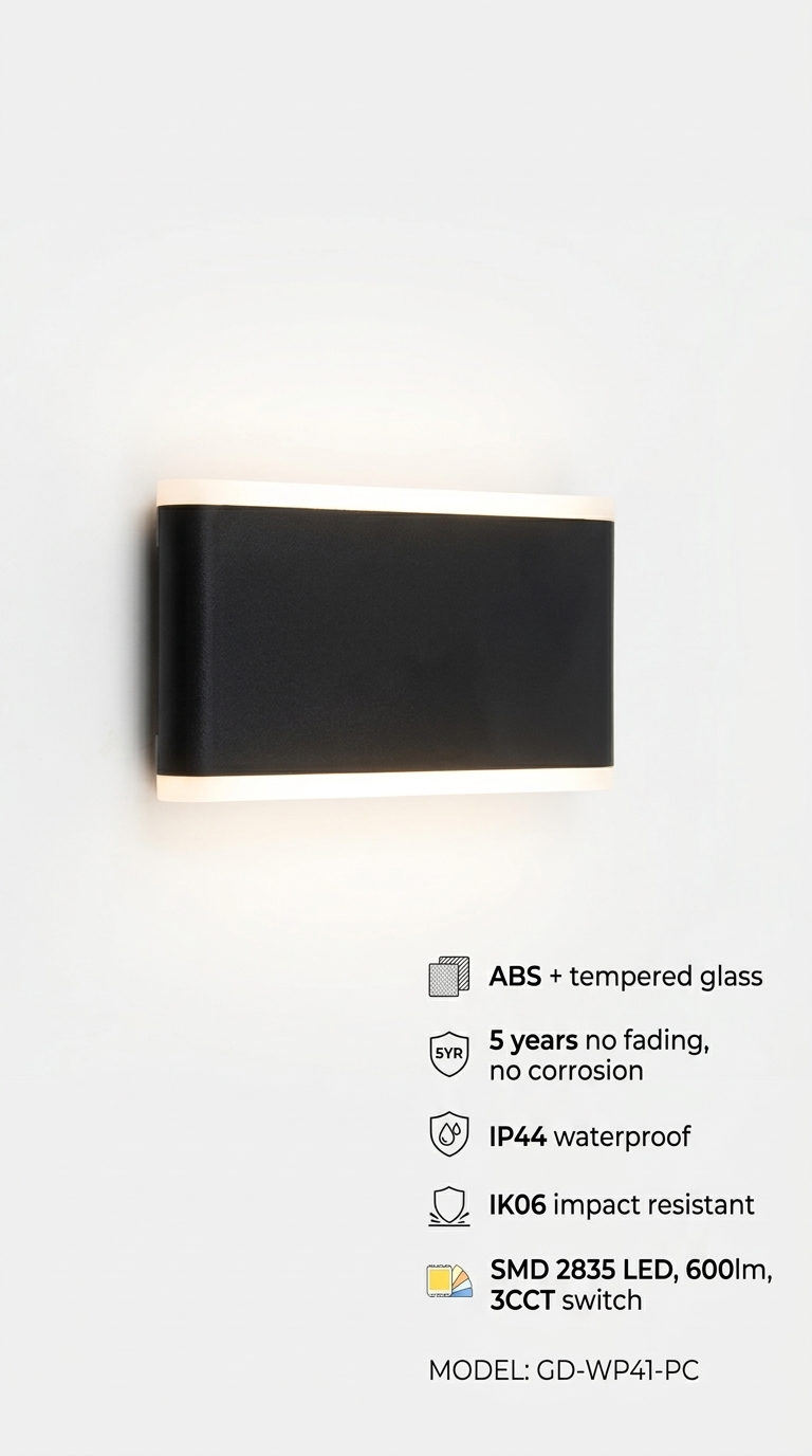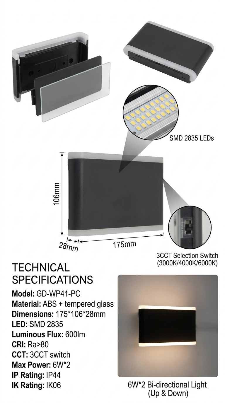 Classificação de proteção: IP44 (resistente à água e poeira), IK06 (resistente a impactos)